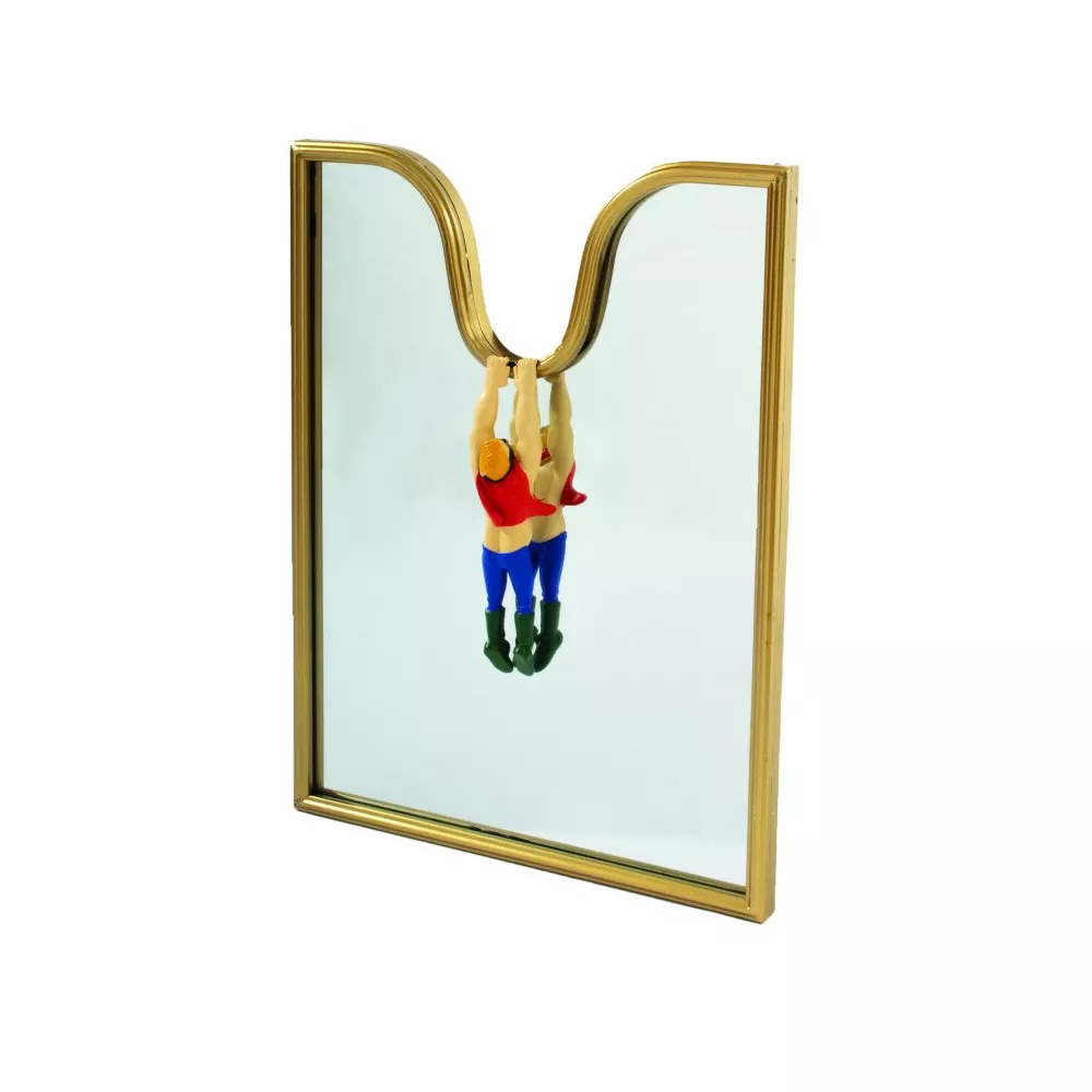 Specchio Circus Mirror Seletti Simpatici personaggi ispirati al mondo del circo, si divertono con oggetti dall'uso quotidiano. Design: Uto Balmoral Materiale: Resina, metallo, vetro Misure: cm 35 x 45 ˜ | IN 13,7 x 17,7 ˜ Codice: 17617
