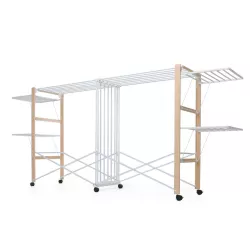 STENDINO ESPANDIBILE ALLUNGO CON RUOTE - FOPPA PEDRETTI Stendibiancheria allungabile con struttura in legno massiccio e ali laterali indipendenti che si aprono separatamente. Ideale per stendere biancheria ingombrante specialmente lenzuoli. Dotato di sei ruote piroettanti. Misure: Aperto H 128 x P 54 x L 300 cm Chiuso H 128 x P 54 x L 19 cm