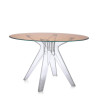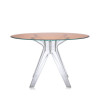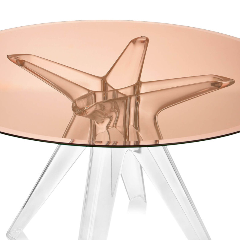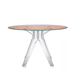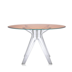 TAVOLO FUME' / BRONZO, "SIR GIO' ", 3275/13 - KARTELL By Philippe Starck Il tavolo disegnato da Philippe Starck rappresenta un'ulteriore innovazione nell’impiego del policarbonato. La gamba centrale è realizzata con uno stampo ad alta innovazione tecnologica: il materiale plastico stampato conferisce alta prestazione e stabilità per sostenere il piano in vetro, che ha una dimensione di 120 cm. Materiale Tecnopolimero termoplastico colorato in massa Colore base: Crystal Dimensioni Altezza: 72 cm Diametro: 120 cm Peso unitario: 34 kg Questo prodotto, viste le dimensioni e/o il valore, avrà un costo di spedizione particolare