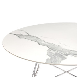 Designer: Antonio Citterio Un tavolo ideale sia per la casa che per l’ufficio. La struttura leggera in acciaio è peculiare per l’utilizzo dell’elemento a croce che congiunge le gambe su ognuno dei quattro lati, offrendo il sostegno al piano. Materiale Struttura: Acciaio Cromato Materiale Piano: Gres Finitura Marmo Ignifugo: Non Ignifugo Uso: Indoor Altezza: 72 cm Diametro: 118 cm Peso: 39 kg Questo prodotto, viste le dimensioni e/o il valore, avrà un costo di spedizione particolare