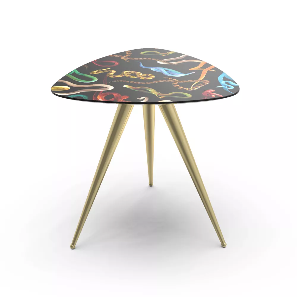 TAVOLINO SERPENTI, 17187 - SELETTI Colorati e modellati come un plettro per chitarra, questi tavoli Sideboard ricreano l'atmosfera tipica del backstage degli anni '70, in esclusiva e sopra le righe. Solo per veri rockstar. Design: TOILETPAPER Materiale: MDF, METALLO Dimensioni: 57 X 57 h.48