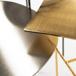 La serie di tavolini da caffè XXX si distingue per il suo contrasto affascinante tra le finiture preziose e le forme volutamente irregolari e non finite. Le galvaniche ricercate - dorata, nichel o nichel nero - rivestono con eleganza il ferro battuto della struttura, creando una fusione armoniosa tra eleganza e rusticità.