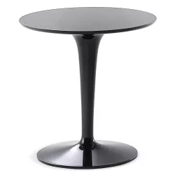 TAVOLINO TIP-TOP, 8600 - KARTELL Tip Top è un pratico tavolino ausiliario, caratterizzato dalla sua agilità, leggerezza e versatilità. È composto da un supporto monoblocco su cui si appoggia un piano rotondo con un diametro di 48 cm. L'interessante combinazione di un piano colorato con una gamba trasparente e cava conferisce alla struttura una sensazione di profondità. Il piano è disponibile in una vasta gamma di colori vivaci, sia trasparenti che opachi. Materiale PMMA COLORATO IN MASSA Dimensioni Altezza: 51 cm Diametro: 48 cm Peso unitario: 3.8 kg