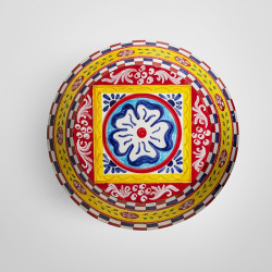 Tavolino Geometrico Carretto, Multicolor Dimensioni: H 30 x 50 x 50 cm Materiale: Ceramica Realizzato in Sicilia, Italia Codice: TVL080701