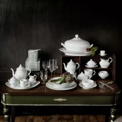 La tazza colazione con piatto della collezione Vecchio Ginori esprime l identita classica della manifattura Ginori 1735 attraverso una fine porcellana bianca impreziosita da un elegante rilievo decorativo. La forma storica, in uso dal 1740, rende il design inconfondibile e trasforma il rito della colazione in un momento di stile e armonia. Perfetta in abbinamento agli altri elementi della stessa linea, incarna autentico savoir faire italiano ed e il regalo perfetto per chi ama una tavola raffinata fin dal primo mattino.