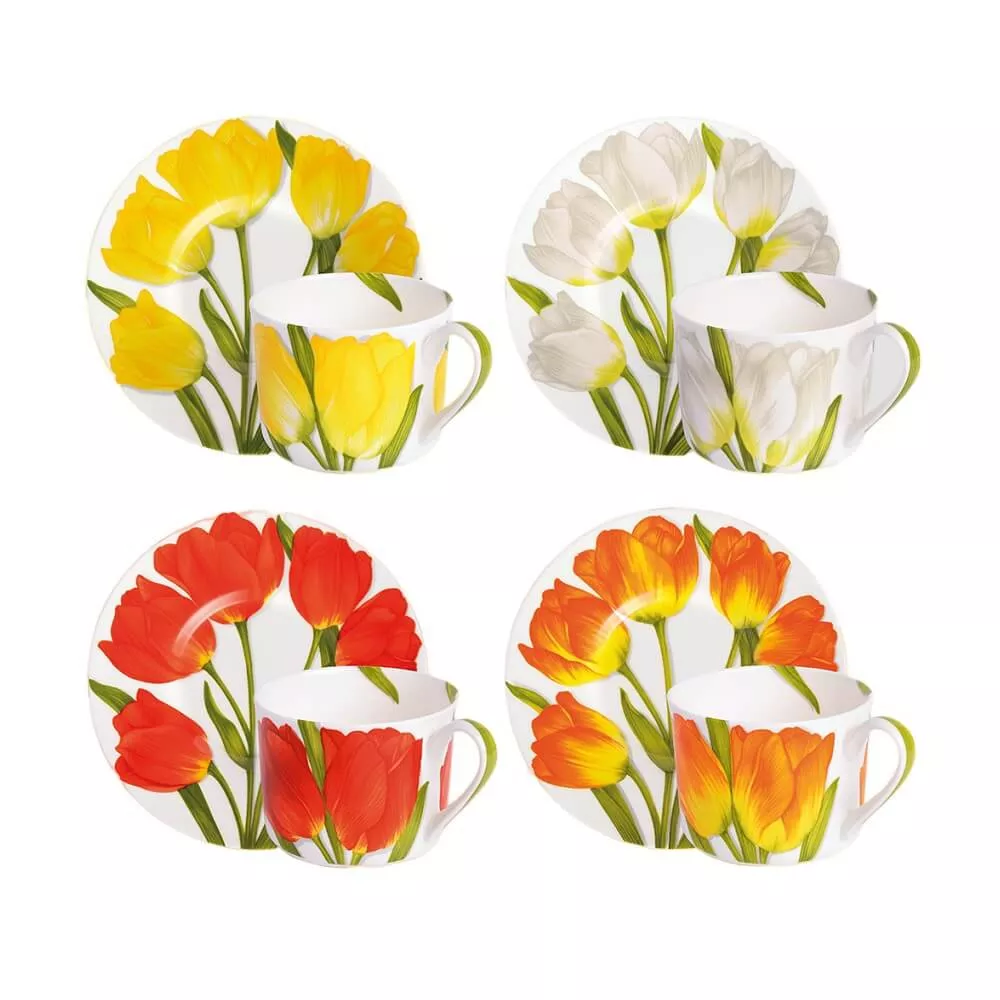 Set di 4 Tazze Tè con piattino Assortiti Freedom Collezione: Freedom Materiale: Fine Bone China Dimensioni: tazza 8,5 cm, piattino 16,5 cm. Capacità 230 ml Utilizzabile in lavastoviglie e nel forno a microonde. Codice SKU: 1-82
