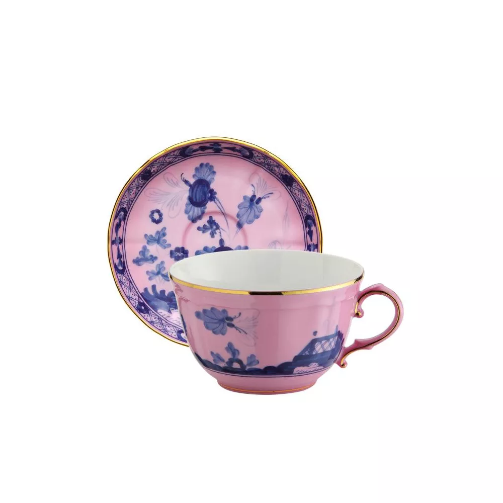 Aggiungi un tocco di eleganza alla tua pausa con la tazza da tea e piattino della collezione Oriente Italiano di Richard Ginori, in porcellana decorata a mano.