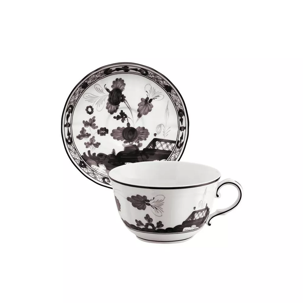 Aggiungi un tocco di eleganza alla tua pausa con la tazza da tea e piattino della collezione Oriente Italiano di Richard Ginori, in porcellana decorata a mano.