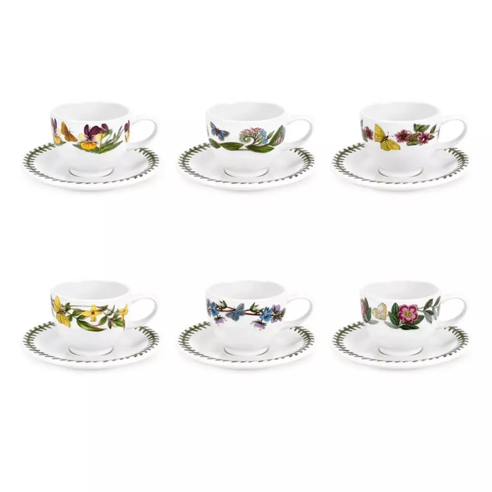 Sei tazze espresso con piattini in stile Botanic Garden - Portmeirion