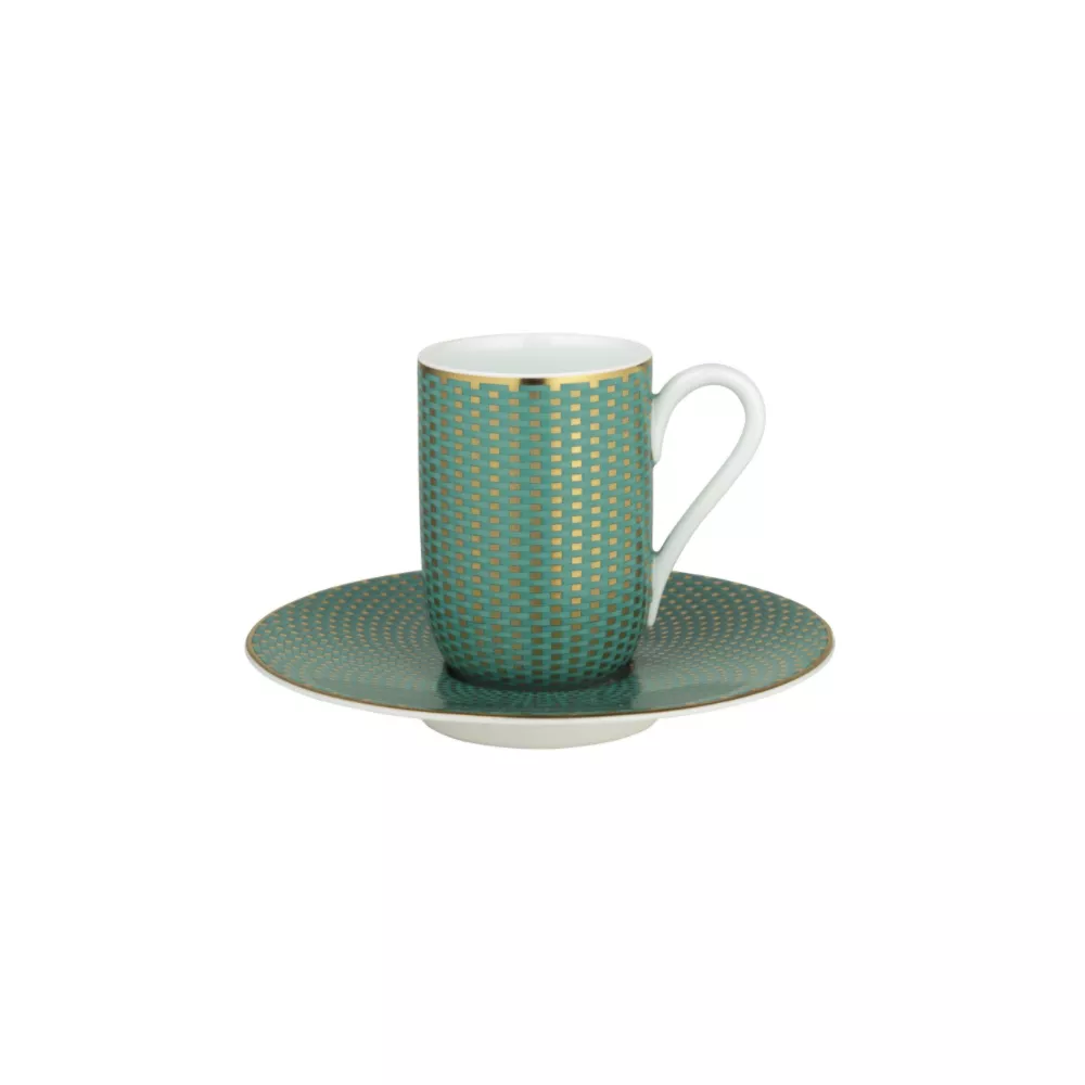 Il servizio di piatti Tresor di Raynaud è caratterizzato da un decoro geometrico, moderno, elegante ed ulteriormente impreziosito dall'oro. La scelta degli accostamenti di colore è originale è d'impatto, conferendo alla tavola un gusto di classe e unicità. Riferimento : 306/356812 Piatto incluso Diametro piatto: 8 cm Altezza tazza : 11 cm Materiale : Porcellana Si consiglia lavaggio a mano