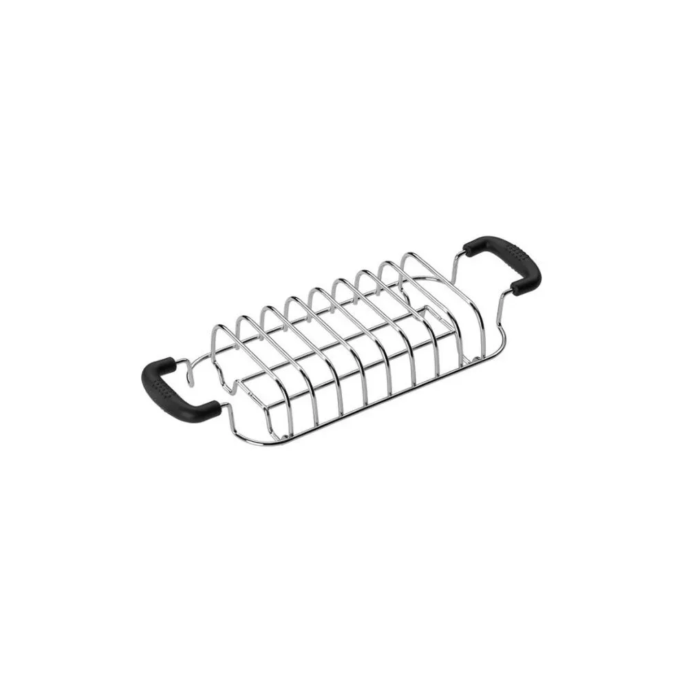 Scalda pane/ Vassoio porta fette per tostapane 2 fette Griglia in acciaio - Maniglie in plastica ad alta resistenza termica. Dimensioni prodotto: HxLxP 2 51x278x103 mm Peso netto: Kg 0,154 Codice Smeg: TSBW01