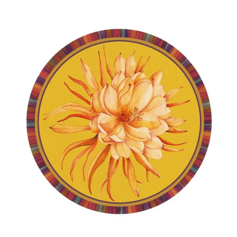 La tovaglietta rigida rotonda con protea reale di L'OCA NERA è un dettaglio che abbellisce la tua tavola ogni giorno. Con numerose combinazioni possibili per una mise en place originale, è un prodotto 100% Made in Italy che può essere abbinato per forma, motivo o colore.