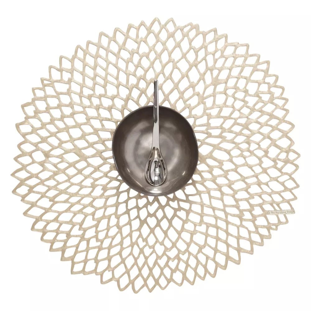 Il set di tovagliette rotonde Dahlia di Chilewich rappresenta una raffinata espressione di design contemporaneo e lavorazione innovativa. Caratterizzate da un elegante motivo traforato, ricordano la delicatezza del pizzo reinterpretata in chiave moderna, creando un effetto scenografico capace di esaltare ogni piatto. Più simili a un sottopiatto che a una classica tovaglietta, valorizzano la mise en place incorniciando ogni portata con leggerezza e stile.
