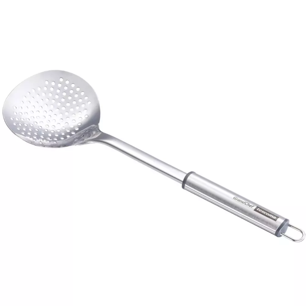 La schiumarola GrandCHEF 428278 di Tescoma è un utensile professionale pensato per facilitare la preparazione e il servizio di numerose ricette. Realizzata in acciaio inox di alta qualità, si distingue per il design elegante e le finiture curate che caratterizzano la linea GrandCHEF. I fori sulla superficie consentono di scolare facilmente i liquidi, rendendola ideale per prelevare gnocchi, verdure, pasta o fritti mantenendoli perfettamente asciutti. Il manico lungo permette di lavorare in sicurezza anche con liquidi molto caldi, proteggendo le mani dal calore. Dotata di un pratico gancio per essere appesa, è perfetta per completare una cucina dal look professionale.