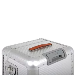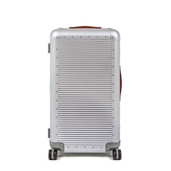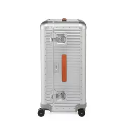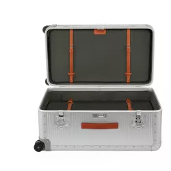 BAULE CON RUOTE, 73cm MOONLIGHT SILVER, "BANK" - FABBRICA PELLETTERIE MILANO - A1507315826 Valigia interamente realizzata in alluminio in Italia con 4 ruote doppie, super silenziose e scorrevoli, che donano grande controllo. Il bagaglio è dotato di una maniglia superiore in comoda pelle e una maniglia di assistenza in gomma antiscivolo. Ulteriore sicurezza è garantita da un lucchetto con TSA integrato (ideale per i viaggiatori che si viaggiano negli Stati Uniti) e da due grandi chiusure a farfalla. l'interno, realizzato in morbida fodera imbottita, è rimovibile per una pulizia più comoda ed efficace. L'interno è caratterizzato da due scomparti dotati di ripiani a rete chiusi da cinghie in pregiata pelle italiana. Il modello Trunk on Wheels è ideale per viaggi di 13-14 giorni. Specifiche tecniche: Altezza 75,5 cm. Larghezza 42,5 cm. Profondità 36,5 cm. Peso 7,6 Kg. Volume 96 Lt. Materiali Alluminio