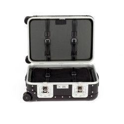 SPINNER 53cm colore: CAVIAR BLACK, "BANK " - FABBRICA PELLETTERIE MILANO - A1505315915 Valigia interamente realizzata in alluminio in Italia con 4 ruote doppie, super silenziose e scorrevoli, che donano grande controllo. Il bagaglio è dotato di una maniglia superiore in comoda pelle e una maniglia di assistenza in gomma antiscivolo. Ulteriore sicurezza è garantita da un lucchetto con TSA integrato (ideale per i viaggiatori che si viaggiano negli Stati Uniti) e da due grandi chiusure a farfalla. l'interno, realizzato in morbida fodera imbottita, è rimovibile per una pulizia più comoda ed efficace. L'interno è caratterizzato da due scomparti dotati di ripiani a rete chiusi da cinghie in pregiata pelle italiana. Il modello Spinner 53 è ideale per viaggi della durata di 2-3 giorni. Specifiche tecniche: Altezza 53 cm. Larghezza 36 cm. Profondità 24,5 cm. Peso 5 Kg. Volume 36,6 Lt. Materiali Alluminio