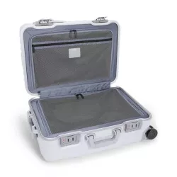 Questa valigia combina eleganza e sicurezza, offrendo una chiusura a doppio lucchetto e un'organizzazione interna impeccabile. Il design ibrido e sofisticato garantisce un'esperienza di trasporto raffinata, adatta per ogni tipo di viaggio.