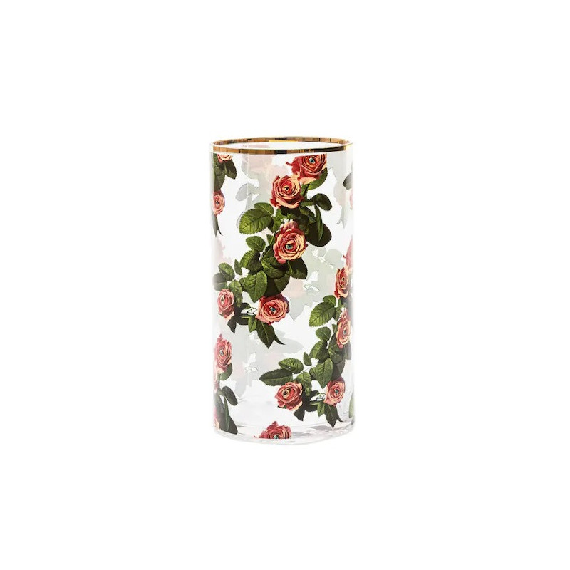 VASO ROSES, 30 CM, VETRO, 14173 - SELETTI Questo vasetto cilindrico da 30 cm, realizzato in vetro, nasce da un'idea del designer Maurizio Cattelan & Pierpaolo Ferrari e targato Toiletpaper Home. Decorazione che richiama le rose con un tocco glamour grazie al bordo oro. Il vaso Roses sarà perfetto per ogni stanza della tua casa. Made in: Cina Materiale: Vetro Designer: Toiletpaper Codice colore: Multicolor Misure: L 30 cm x H 15 cm