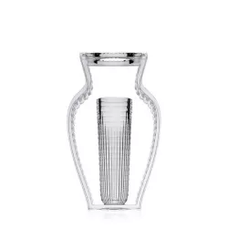 VASO I SHINE, 1215 - KARTELL Eugeni Quitllet ha creato una collezione di vasi decorativi per Kartell realizzati in PMMA trasparente. Questa linea comprende un vaso e un centrotavola, caratterizzati da eleganti geometrie ispirate allo stile déco. Ciò che rende questi due vasi unici è la raffinata finitura del materiale plastico, che li fa sembrare realizzati in cristallo. Materiale: PMMA trasparente o colorato in massa Dimensioni: L 20 x P 9,5 cm Altezza: 33 cm Peso: 1,5 kg