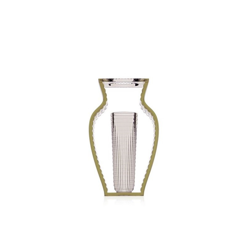 VASO I SHINE, 1215 - KARTELL Eugeni Quitllet ha creato una collezione di vasi decorativi per Kartell realizzati in PMMA trasparente. Questa linea comprende un vaso e un centrotavola, caratterizzati da eleganti geometrie ispirate allo stile déco. Ciò che rende questi due vasi unici è la raffinata finitura del materiale plastico, che li fa sembrare realizzati in cristallo. Materiale: PMMA trasparente o colorato in massa Dimensioni: L 20 x P 9,5 cm Altezza: 33 cm Peso: 1,5 kg