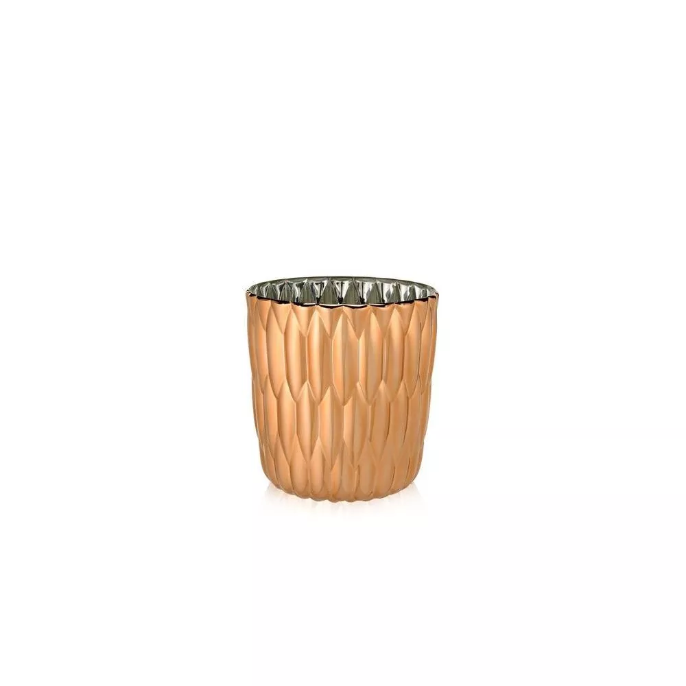 VASO JELLY METALLIZZATO, 1228 - KARTELL Kartell ha rivoluzionato il concetto di plastica trasformandola in un materiale di grande valore, nobilitato e sofisticato. Ora, grazie all'innovazione delle nuove finiture metalliche, come l'oro, il rame, l'argento e il titanio, i prodotti Kartell si trasformano in autentici articoli di lusso. Un esempio è la collezione Jelly, uno dei grandi classici di Kartell, che si arricchisce di queste nuove finiture metalliche, conferendo al prodotto un'aura completamente nuova ed esclusiva. Materiale: PMMA metallizzato Dimensioni: H 25 x D 23,5 cm Peso: 1.84 kg