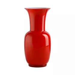 Vaso Opalino 706 - Venini Paolo Venini ha creato il vaso Opalino nel 1932, frutto della sua mente creativa straordinaria. Il vaso è fatto con lo strato interno di lattimo, un vetro bianco opaco che fu inventato a Murano nel XV secolo per imitare le porcellane europee di moda. Questo vetro conferisce al vaso Opalino una raffinatezza ed eleganza straordinarie. Vetri soffiati e lavorati a mano, opere uniche ed irripetibili, dalle linee pure ed essenziali.