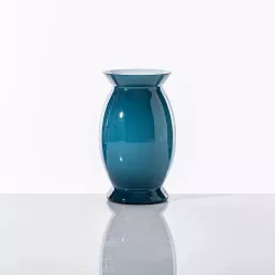 La serie di vasi Acco, Idalion e Sidone, disegnata da Alessandro Mendini per Venini negli anni '90, rappresenta un esempio di eleganza senza tempo. Realizzati in vetro soffiato e lavorati a mano, questi vasi si caratterizzano per un filo di vetro riportato a caldo sulle due parti più strette del vaso. La loro forma classica e pulita li rende ideali per decorare con stile qualsiasi spazio. Questa collezione essenziale e sinuosa fa parte dei classici senza tempo di Venini.