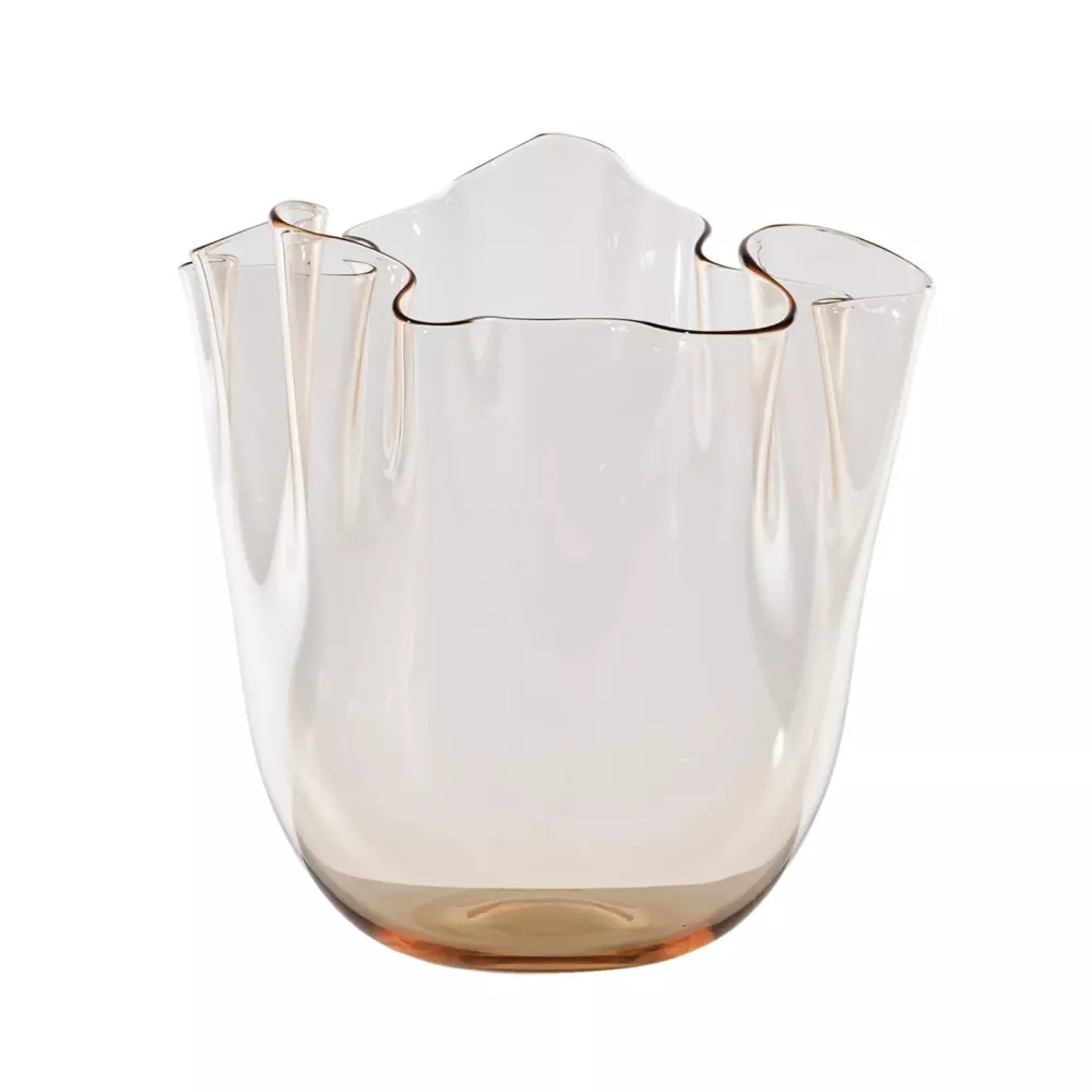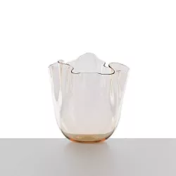 Si chiama “Fazzoletto”, ma non vola via. O forse sì, se ci soffi? Nasce dal gesto fluido, morbido e deciso del maestro vetraio, una danza di vetro soffiato che dà forma a uno degli oggetti simbolo del design italiano. Disegnato da Fulvio Bianconi, è tra le prime opere create per Venini ed è esposto nella collezione permanente del MOMA di New York. Un’icona senza tempo, in vetro trasparente, lavorata a mano volante.