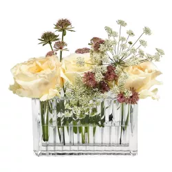 Il vaso Mille Nuits Infinite #1 di Baccarat, creato da Mathias, è un elemento modulare in cristallo trasparente che permette di comporre decorazioni floreali uniche. Grazie alle sfaccettature sapientemente lavorate, può essere combinato con altri elementi della collezione per creare composizioni rotonde, a zig-zag o a spirale, trasformando ogni allestimento in un’opera d’arte luminosa.