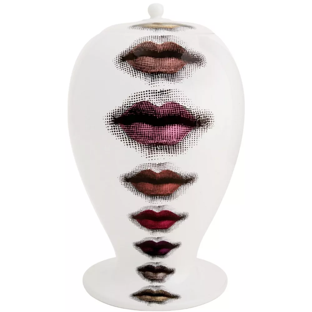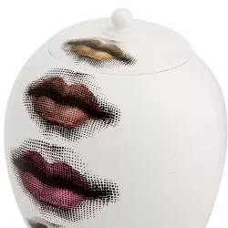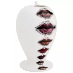 Gli elementi essenziali del volto di Lina Cavalieri impreziosiscono questo vaso in ceramica decorato a mano, parte della collezione Tema e Variazioni. Un vero pezzo da collezione, che unisce arte e design con la raffinatezza e l’ironia tipiche del linguaggio creativo di Fornasetti. Ogni minima variazione è il segno distintivo della lavorazione artigianale che rende unica ogni creazione.