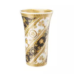 L'eredità di Versace e il suo fascino per le epoche gloriose è ancora opulenta ma rinnovata in uno stile puro, rendendo la nuova collezione "I Love Baroque" non stagionale e senza tempo. La collezione 2017 di Rosenthal incontra Versace reinterpreta il patrimonio della Maison con raffinate decorazioni in stile barocco in toni distintivi di nero, bianco e oro. L'oro Medusa attira l'attenzione, mentre i ricorrenti simboli neoclassici si intersecano in bande geometriche. Firma della stampa barocca, urne, allori e ornamenti spiccano su uno sfondo opaco nero o bianco, il tutto arricchito con oro. Sku: 14091/403651/26026 Dimensioni: h. cm 26