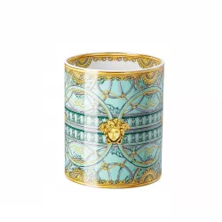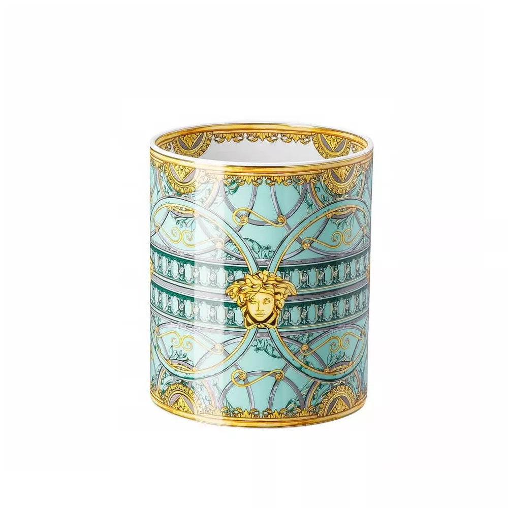 Prima che la famosa e iconica testa di Medusa richiami l'attenzione dell'osservatore, quest'ultimo è particolarmente colpito dalla maestosa scalinata in marmo all'ingresso di Palazzo Versace in via Gesù a Milano. Linee lucenti in metallo a spirale conducono all'interno della residenza e fanno già intuire la bellezza di cui si potrà godere all’interno; hanno inoltre ispirato i designer nella creazione della nuova decorazione "La Scala del Palazzo" per Rosenthal meets Versace. Lo stile pregnante del nuovo servizio è esaltato dall'eleganza del verde e del rosé pastello, che ricordano l'affascinante mondo cromatico degli antichi palazzi italiani. Materiale: porcellana Diametro: 15 cm Altezza: 18 cm