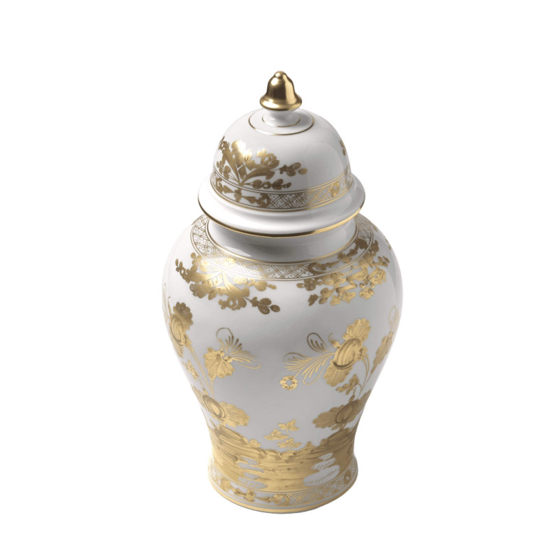 Il vaso Potiche della collezione Oriente Italiano e un raffinato oggetto decorativo in porcellana, caratterizzato dal celebre motivo a garofano in blu che risalta con eleganza sul fondo citrino. Un equilibrio perfetto tra maestria artigianale italiana e suggestioni orientali, pensato per donare fascino, colore e carattere a qualsiasi ambiente. Iconico e scenografico, trasforma ogni spazio in una cornice preziosa.