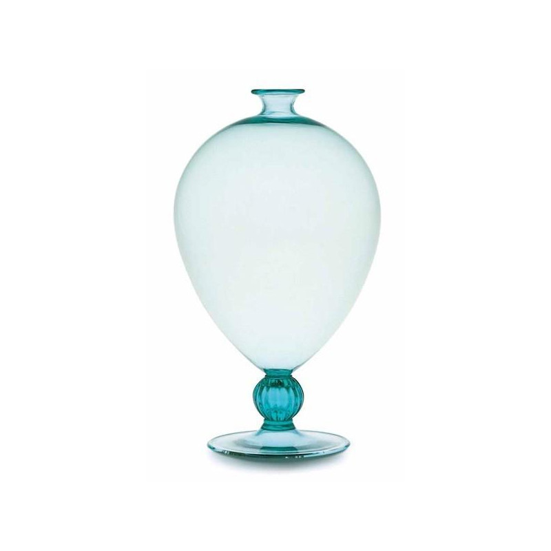 VASO VERONESE 600/01, ACQUAMARINO - VENINI Il Vaso Veronese è un oggetto di design in vetro soffiato a mano, caratterizzato da un'elegante forma a bulbo, un sottile collo allungato e un'ampia base. La lavorazione in vetro trasparente del vaso evidenzia l'abilità artigianale dei maestri vetrai di Venini. Il Vaso Veronese è stato disegnato nel 1939 da Napoleone Martinuzzi, un celebre designer italiano che ha lavorato per Venini dal 1925 al 1932 e dal 1936 al 1950. Questo vaso rappresenta un classico del design italiano, si ispira all'Annunciazione della Vergine di Paolo Veronese (da cui prende il nome) e viene ancora oggi prodotto da Venini in diverse dimensioni e colori. Vaso in vetro soffiato a mano Dimensioni: Ø 20 x H 32 cm Kg: 1,5 Designer: Vittorio Zecchin