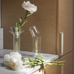 VASO NARCISO OTTICO, 24 CM, 09370368 - ICHENDORF MILANO Il Vaso Narciso creato da Ichendorf è un oggetto darà un tocco di eleganza alla vostra casa. Realizzato in vetro borosilicato con linee stilizzate e progettato da Chiara Andreatti, il vaso è composto da due parti: una parte esterna rigata e un cono liscio all'interno, dove è possibile inserire i fiori o altri elementi decorativi. Dimensioni: H 27 x ø 12 cm Materiale: vetro borosilicato