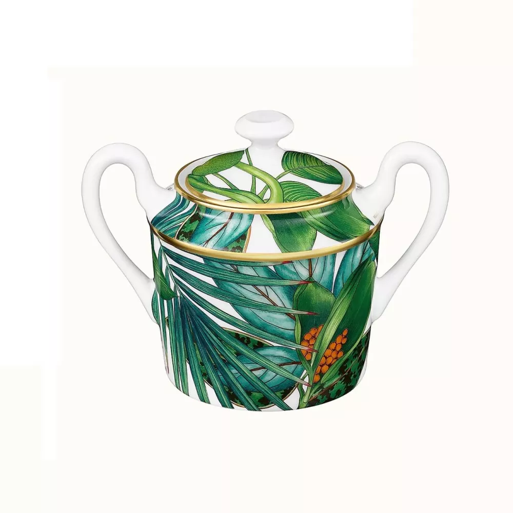 Un omaggio alle foglie che proteggono la terra, ai colori che nascono dal cielo. Alla potenza della flora, alla sua passione, al suo estro, alle sue foglie nel cui fruscio risuona la parola Passifolia. Zuccheriera in porcellana di Limoges Decorazioni cromolitografiche Fabbricato in Francia Capacità: 21 cl Per tutti i prodotti Hermés non disponibili al momento dell'acquisto, si prega di considerare tempistiche di consegna dai 6 fino ad oltre i 12 mesi.