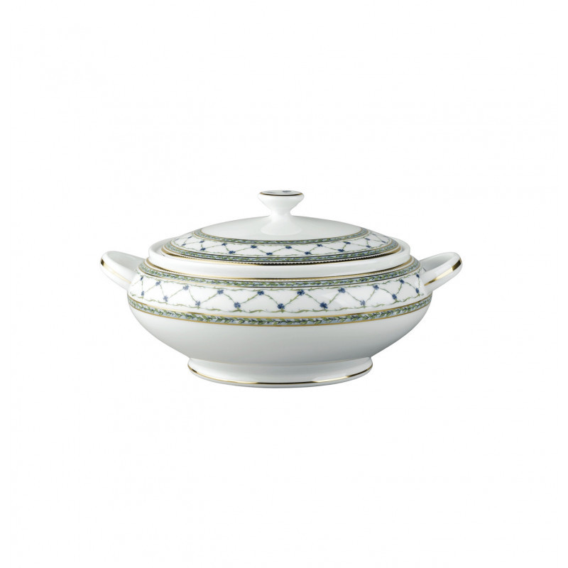 La “Allée du Roy” è una delle collezioni classiche di Raynaud, ispirata al XVIII secolo francese, che vide la creazione di una miriade di disegni in porcellana dedicati al re e alla sua corte. Un traliccio intrecciato con foglie e fiordalisi tra corone di alloro caratterizza tutti i pezzi del servizio nei toni del blu e del verde. Materiale: Porcellana Limoges Zuppiera con coperchio Dimensioni: 25 x 15 cm Capacità: 1,75 lt
